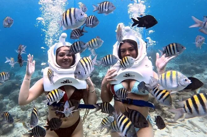 I’ll admit, I hesitated when they handed me that big helmet—looked heavier than my backpack after a month on the road. But our guide, Miguel, just grinned and said it’s lighter underwater, promise. He was right. The helmet settled on my shoulders like a weird astronaut suit, but suddenly I could breathe normally and hear my own nervous laugh echoing inside. There was this salty tang in the air and the sun kept flickering through the water as we stepped off the beach into that blue world.