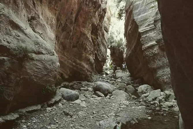 The gorge walk involves uneven ground and some squeezing between rocks but is manageable for most fitness levels.