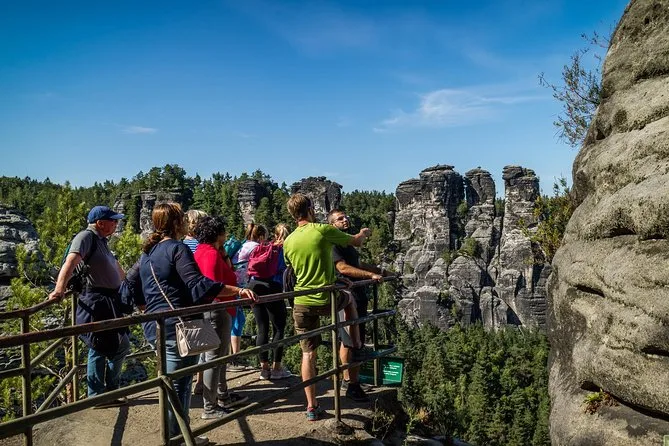 You’ll visit spots like Pravcicka Gate, Bastei Bridge in Saxon Switzerland, and possibly Kamenice River Gorges or Tisa Rocks depending on your chosen option.