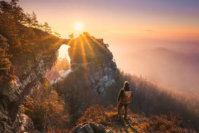 You’ll hike through forests and sandstone arches in Bohemian & Saxon Switzerland, cross the famous Bastei Bridge high above the Elbe River, and share stories over a hearty Czech lunch (with vegetarian options). Expect small surprises — local drinks, hidden trails — and honest moments you’ll remember long after you’re back in Prague.