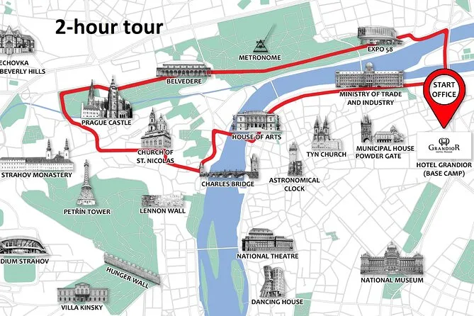 You’ll visit Letná Park, Metronome, Charles Bridge viewpoint, Prague Castle area, Petrin Tower, John Lennon Wall, National Theatre and Wenceslas Square.