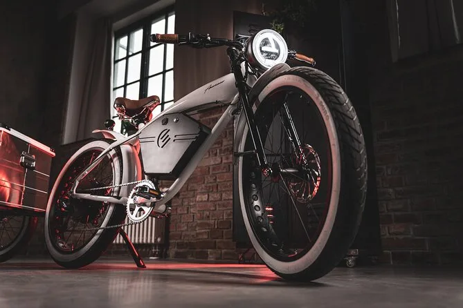 Your day includes use of a stylish cafe-racer e-bike with helmet provided, bottled water whenever you need it, raincoat if clouds roll in unexpectedly, plus an experienced local guide leading you through each stop—from Charles Bridge all the way up to Strahov Monastery before looping back again.