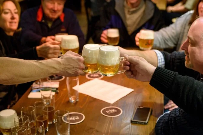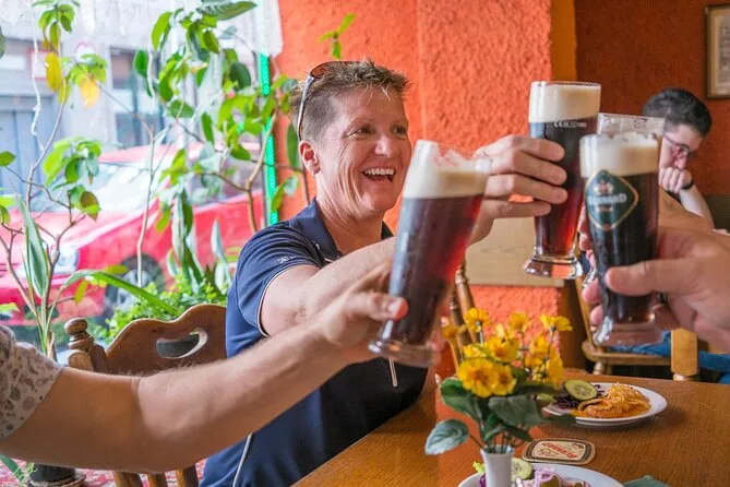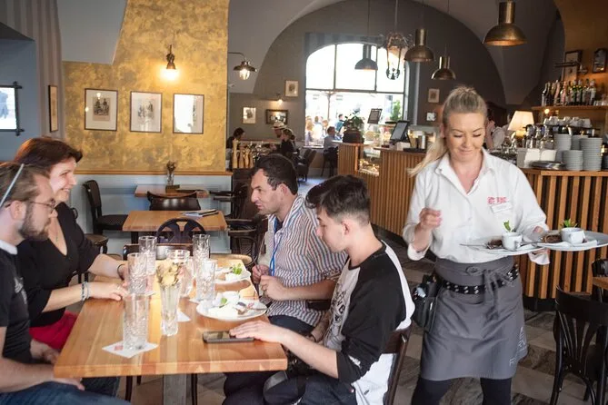 Your day includes nine tastings across five stops—from home-baked gingerbread to classic Czech open-faced sandwiches—with two Czech beers plus local wine along the way. You’ll sip craft brews aboard a floating brewery on the Vltava River and enjoy lunch at Café Louvre where Kafka once dined; all guided by an English-speaking local who shares stories as you walk through Old Town and Josefov.