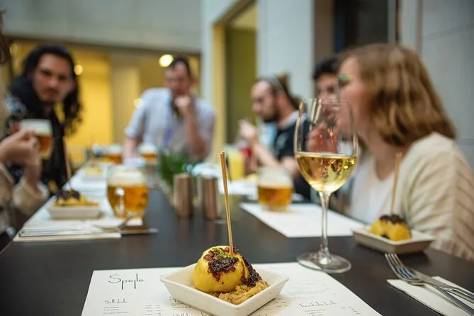 The tour typically lasts several hours as you walk between locations in central Prague with tastings along the way.