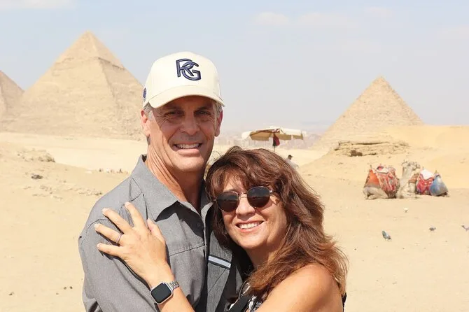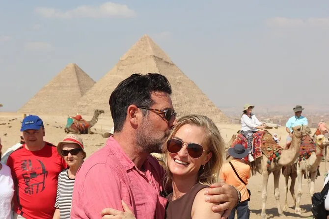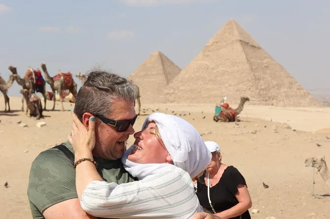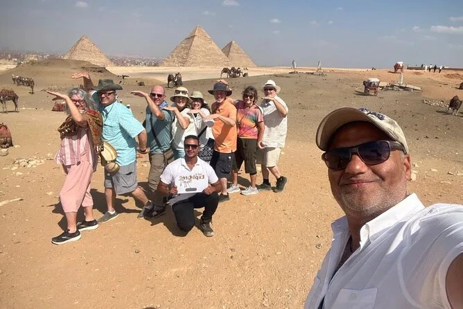 Dein Tag umfasst die private Abholung und Rückfahrt direkt vom Hafen Alexandria im klimatisierten Van, geführte Besuche der Gizeh Pyramiden (inklusive Stopp bei der Sphinx) und des Ägyptischen Museums in Kairo mit einem erfahrenen Ägyptologen, alle Eintrittsgelder, einen 30-minütigen Kamelritt nahe den Pyramiden (keine Extra-Buchung nötig), Wasserflaschen gegen die Wüstentrockene Luft, freie Zeit zum Stöbern im verwinkelten Khan el-Khalili Basar nach handgemachten Souvenirs oder einfach zum Leute beobachten – und ein Mittagessen in einem ägyptischen Restaurant, bevor es zurück an die Küste geht.