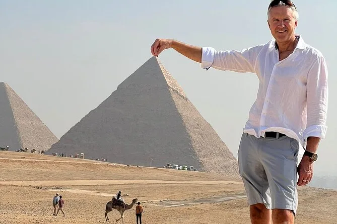 Dein Tag umfasst den Hoteltransfer im klimatisierten Fahrzeug, alle Eintrittsgelder (inklusive Zugang zur Großen Pyramide) sowie die Führung durch einen qualifizierten Ägyptologen, der jede Station mit spannenden Geschichten lebendig macht – bevor du bequem zurück zu deinem Hotel gebracht wirst.