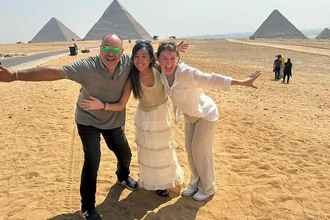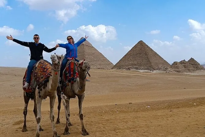 Erkunde Gizeh mit einem lokalen Guide, der Geschichte lebendig macht, reite mit dem Kamel still an allen neun Pyramiden vorbei, betritt die 3. Pyramide und stehe unter dem Blick des Sphinx, bevor du in der Nähe zu Mittag isst. Echtes Abenteuer – mit staubigen Händen inklusive.