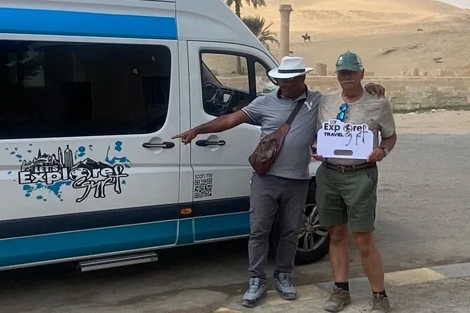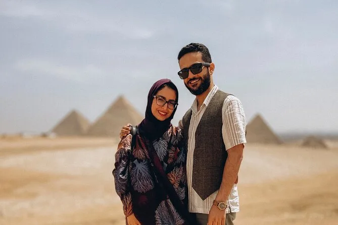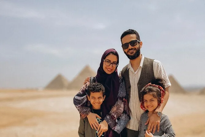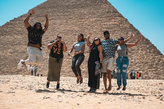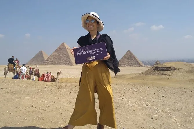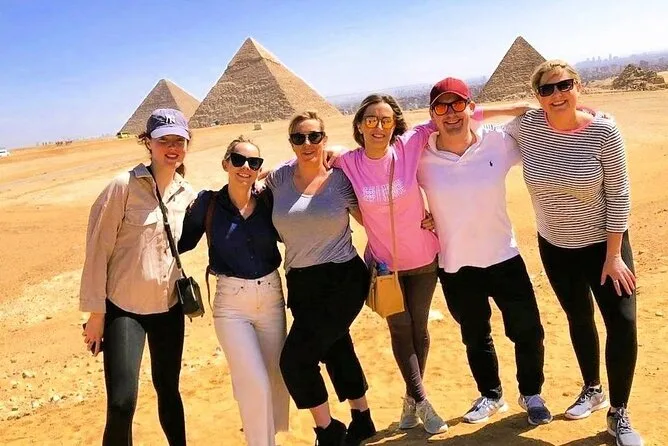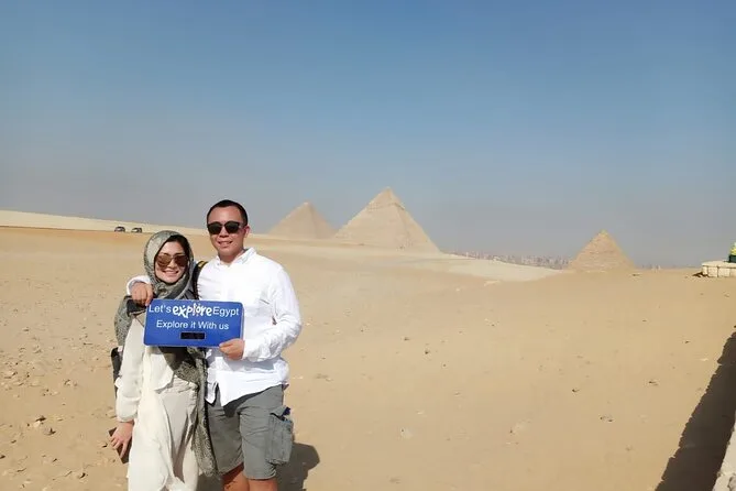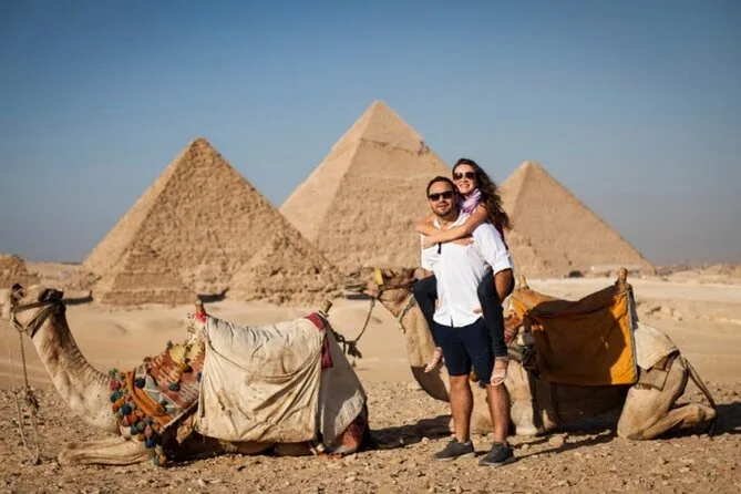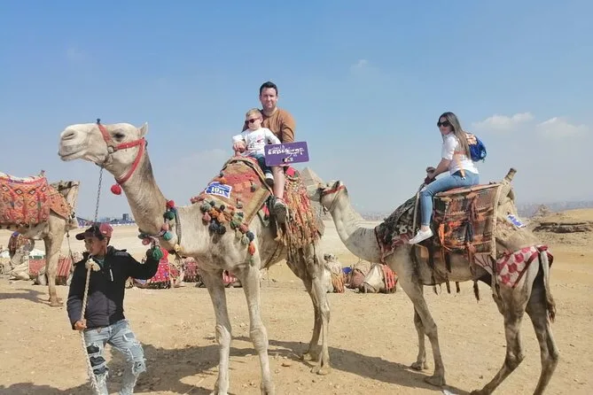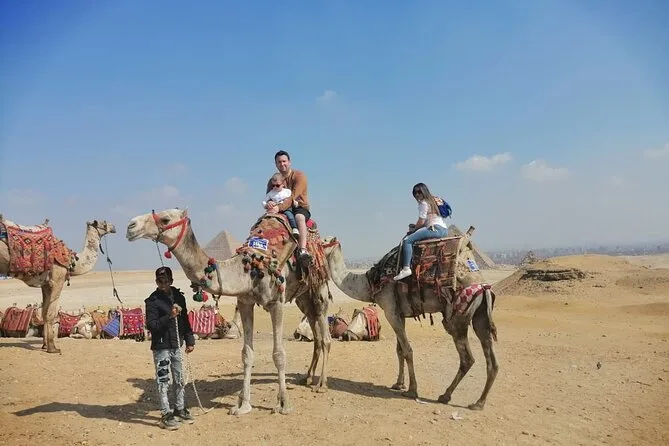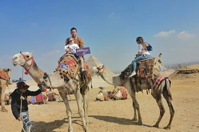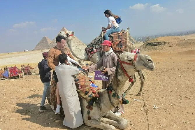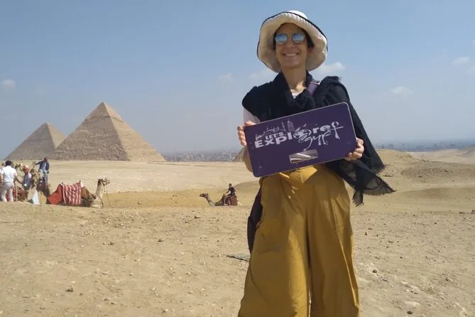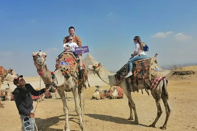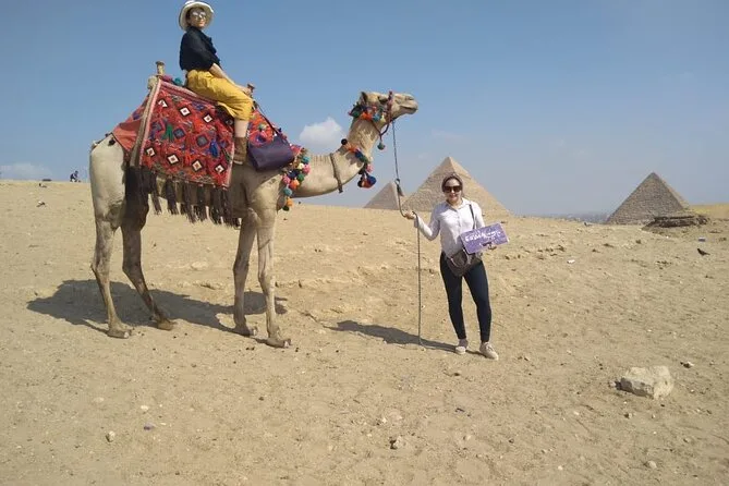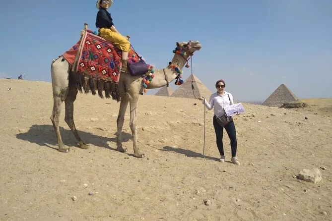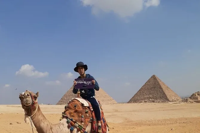 Dein Tag beinhaltet die Abholung und Rückfahrt vom Hotel mit modernem Auto oder Van innerhalb Kairos, alle Eintrittskarten für die Pyramiden von Gizeh (inklusive Eintritt in die Pyramide des Menkaure), Sakkara, Memphis und die Sphinx; einen privaten Ägyptologen als Guide; Wasserflaschen unterwegs; einen 30-minütigen Kamelritt bei Gizeh; sowie ein VIP-Fünf-Sterne-Mittagessen mit Blick auf die uralten Steine, bevor es zurück zum Hotel geht.