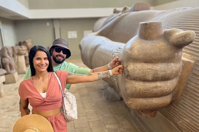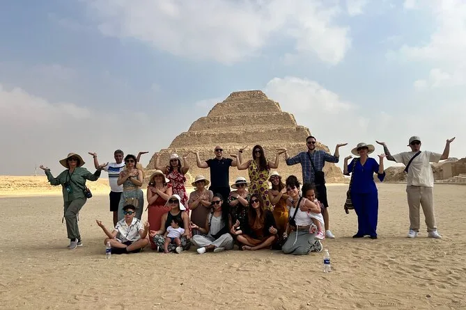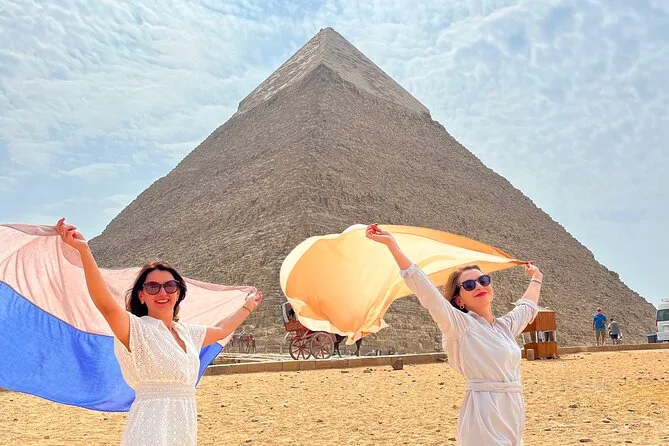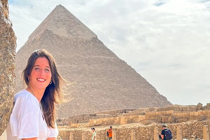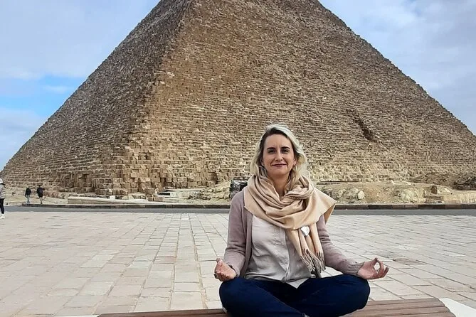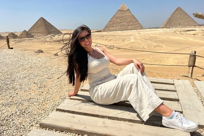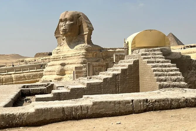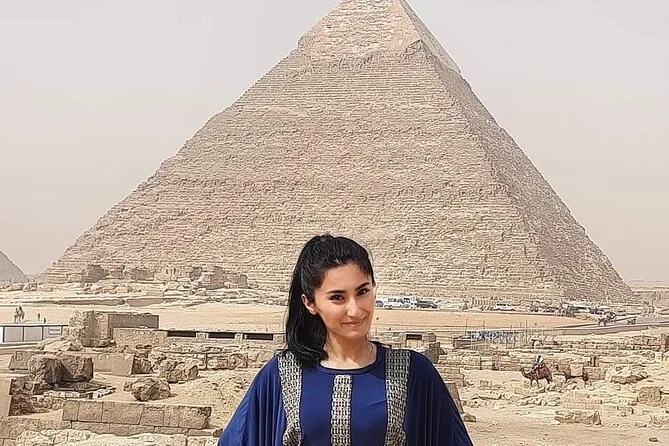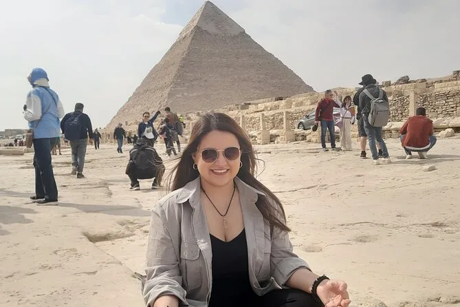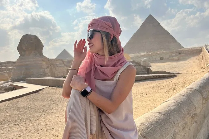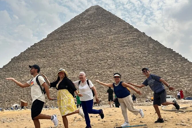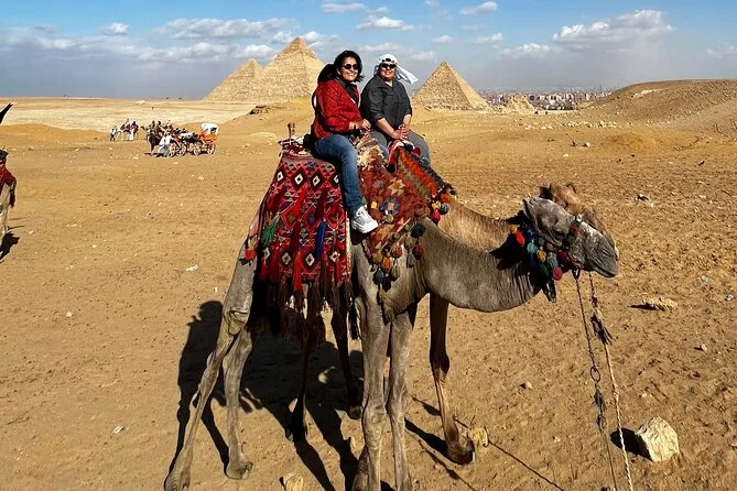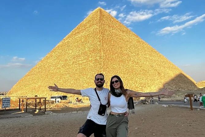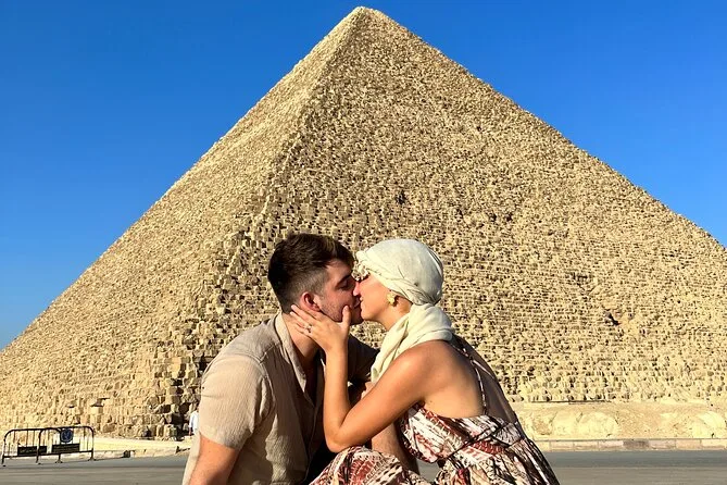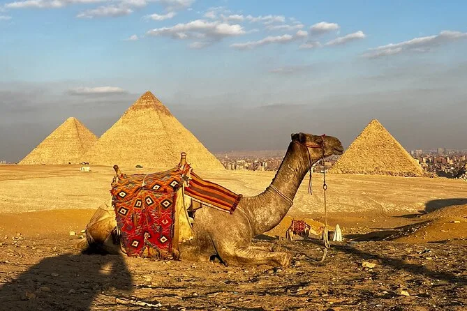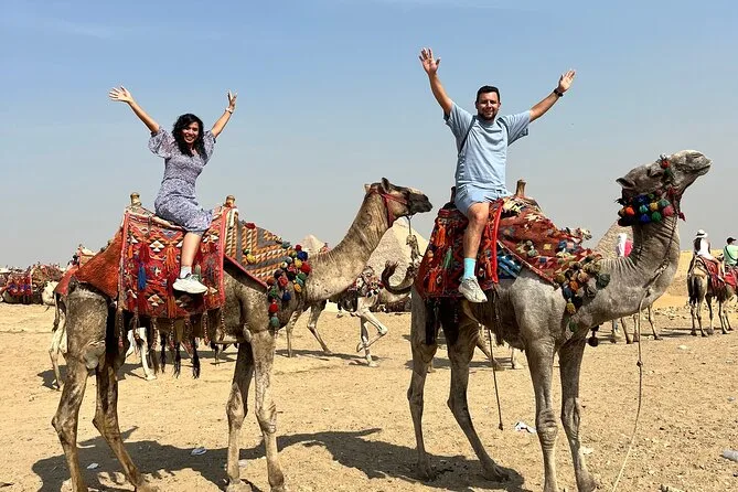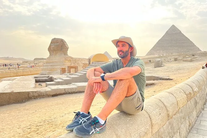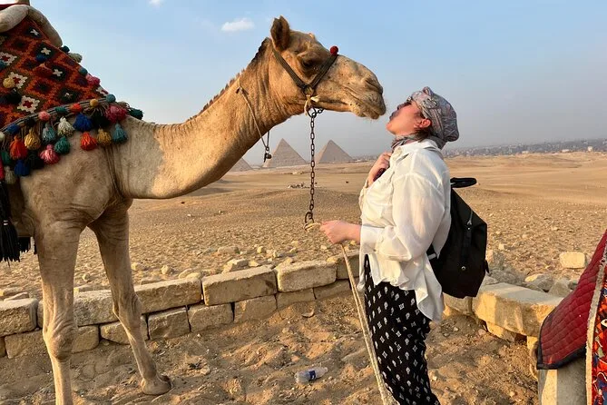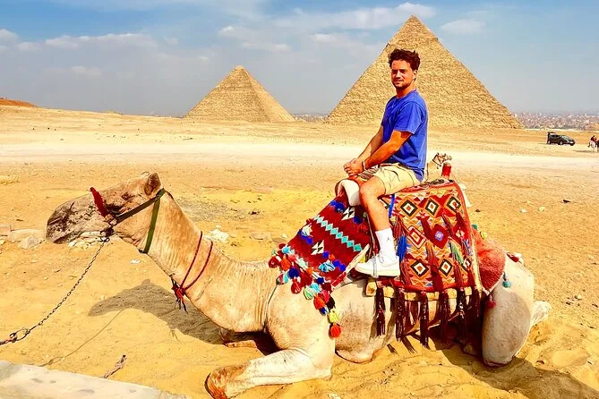 Dein Tag umfasst die private Abholung vom Hotel in Kairo mit klimatisiertem Auto, Eintritt zum Gizeh-Pyramiden-Plateau (mit optionalem Zugang zur Cheops-Pyramide), einen 20-minütigen Kamelritt am Wüstenrand bei der Sphinx, Begleitung durch einen mehrsprachigen Ägyptologen, der auch Fotograf ist, sowie ein Mittagessen in einem lokalen Restaurant – mit Zeit für Souvenirs, wenn du möchtest.
