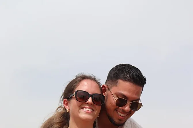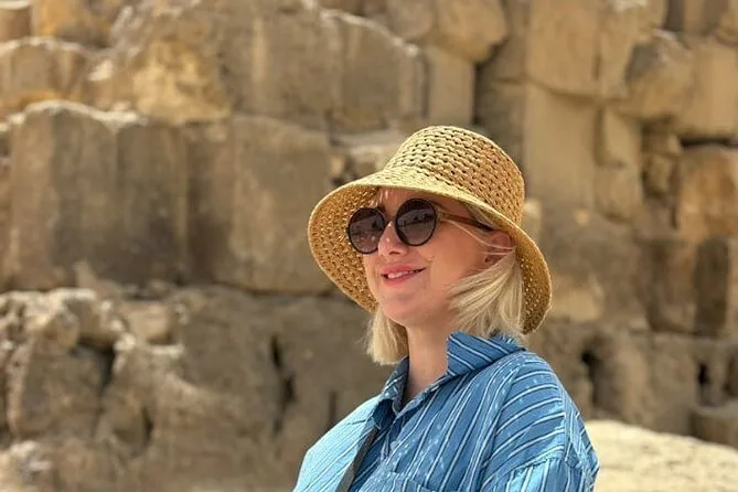 Die Ankunft bei den Pyramiden von Gizeh war fast unwirklich. Man sieht sie sein Leben lang auf Fotos, aber dort zu stehen – der Sand knirscht unter den Füßen, Kamele grunzen in der Nähe – das ist etwas anderes. Die Große Pyramide wirkt einfach überwältigend. Hossam erklärte, wie jeder einzelne Stein bewegt wurde (ich kann es immer noch kaum fassen) und zeigte uns alte Inschriften von Arbeitern, die vor Tausenden von Jahren dort hinterlassen wurden. Plötzlich rief ein Kameltreiber auf Englisch: „Willst du reiten? Gutes Kamel!“ Ich zögerte kurz, stieg aber trotzdem auf; die Aussicht von dort oben ist atemberaubend – man sieht die uralten Steine und im Hintergrund das lebhafte Kairo. Meine Beine fühlten sich danach wie Wackelpudding an.