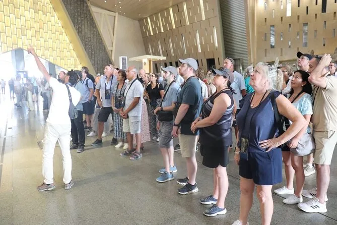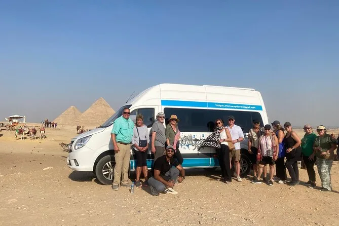 Dein Tag beinhaltet Abholung und Rückfahrt direkt am Hafen von Alexandria mit modernem Fahrzeug, Eintritt zu allen Sehenswürdigkeiten (Pyramiden von Gizeh, Sphinx, Grand Egyptian Museum), Begleitung durch einen erfahrenen Ägyptologen, Wasserflaschen während der Fahrt, einen 30-minütigen Kamelritt bei den Pyramiden sowie ein Mittagessen in einem lokalen Restaurant, bevor es zurück zum Schiff geht.