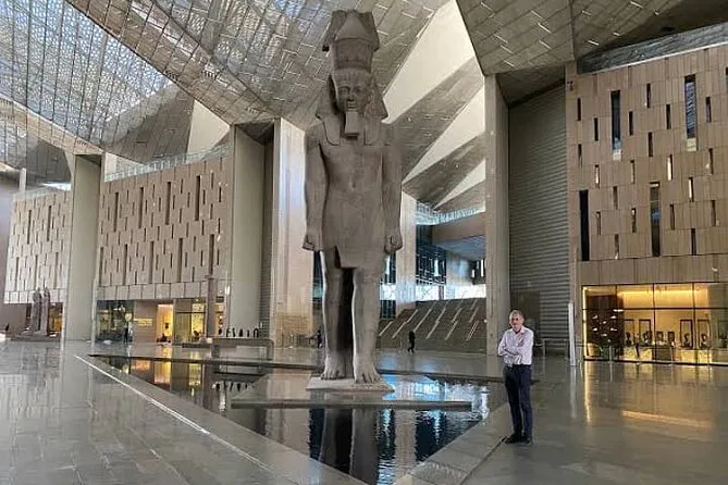 Du steigst direkt am Hafen von Alexandria aus und verbringst einen ganzen Tag mit den legendären Sehenswürdigkeiten Kairos: Steh unter den Pyramiden von Gizeh und der Sphinx, reite mit dem Kamel durch goldene Sanddünen, genieße ein Mittagessen in einem lokalen Restaurant und entdecke die Schätze im Grand Egyptian Museum – alles begleitet von einem erfahrenen Ägyptologen.