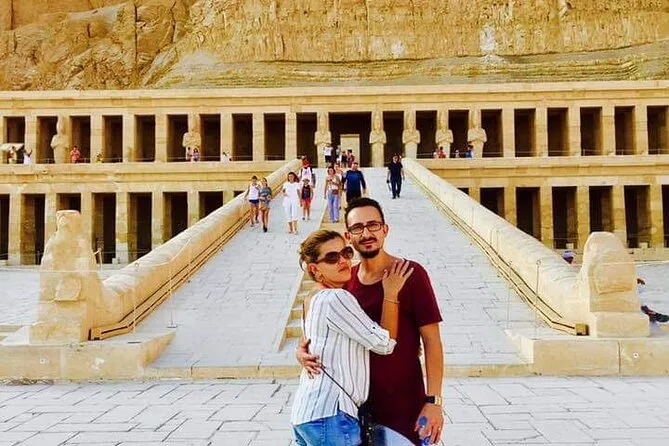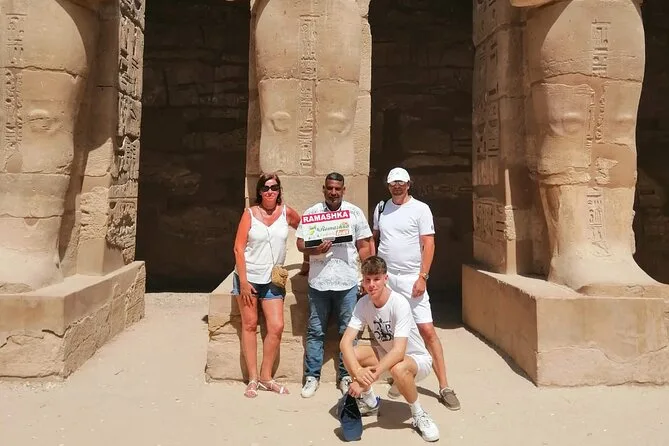 Du siehst den Karnak-Tempel, das Tal der Könige (mit Eintritt zu drei Gräbern), den Tempel der Hatschepsut, das Ramesseum und die Kolosse von Memnon.