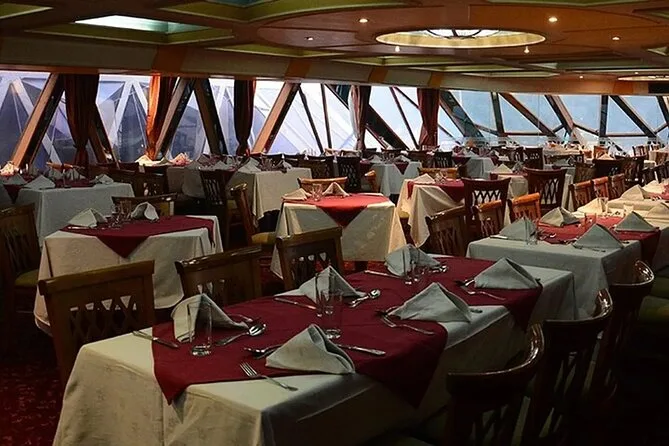 Dein Abend beinhaltet die Abholung und Rückfahrt zum Hotel in Kairo, alle Steuern und Gebühren sind im Preis enthalten, sodass es keine Überraschungen gibt. Du hast Zugang zu einem offenen Buffet mit vielen ägyptischen Gerichten und kannst während des Essens eine Bauchtanz-Show sowie eine traditionelle Tanoura-Vorführung genießen, bevor es zurück zum Hotel geht.