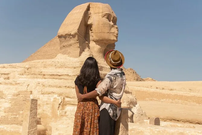 Dein Tag beinhaltet die Abholung und Rückfahrt vom Hotel in Kairo oder Giza in einem klimatisierten Fahrzeug, Begleitung durch einen Ägyptologen bei allen Stopps an den Giza Pyramiden und der Sphinx (inklusive Eintritt, wenn gewählt), Zugang zum Taltempel des Chephren sowie alle Steuern und Servicegebühren – so kannst du dich ganz auf das Erlebnis konzentrieren.