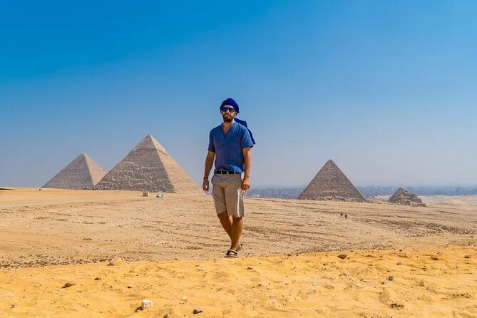 Starte direkt von deinem Hotel in Kairo zu einer halbtägigen Entdeckungsreise über Gizas uralte Sandflächen, geführt von einem Ägyptologen, der die Steine zum Leben erweckt. Steh unter der Großen Pyramide, blick in die Augen der Sphinx und erkunde den Taltempel des Chephren – bevor du zurück in den Stadttrubel kommst, vielleicht noch den Sand aus den Schuhen klopfend.