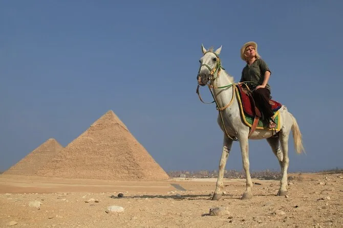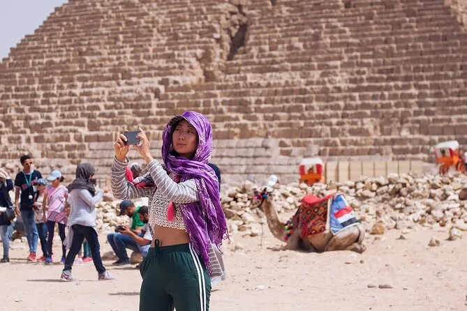 Du besuchst das Ägyptische Museum, die Pyramiden von Gizeh (Cheops/Khufu, Chephren/Khafre, Mykerinos/Menkaure), die Große Sphinx und isst in einem lokalen Restaurant zu Mittag.