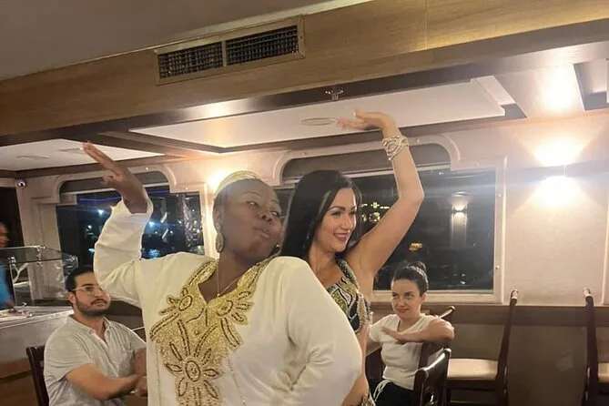 Sie werden direkt am Hotel abgeholt und steigen an Bord eines 5-Sterne-Nil-Dampfers für ein Dinner mit live Bauchtanz und Sufi-Vorführungen – während Kairo draußen im Fensterlicht erstrahlt. Eine unkomplizierte Möglichkeit, die Stadt von einer ganz anderen Seite zu erleben.
