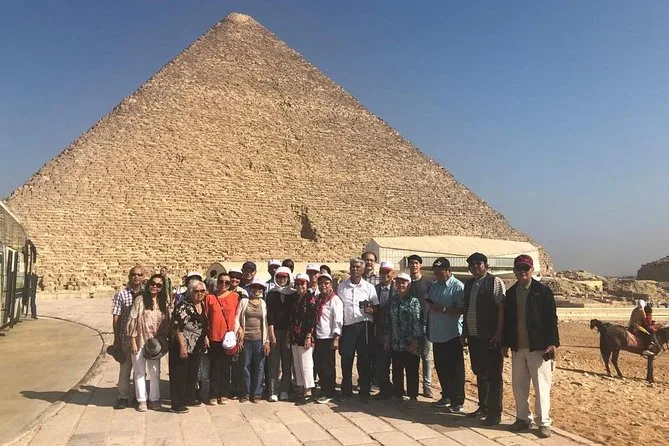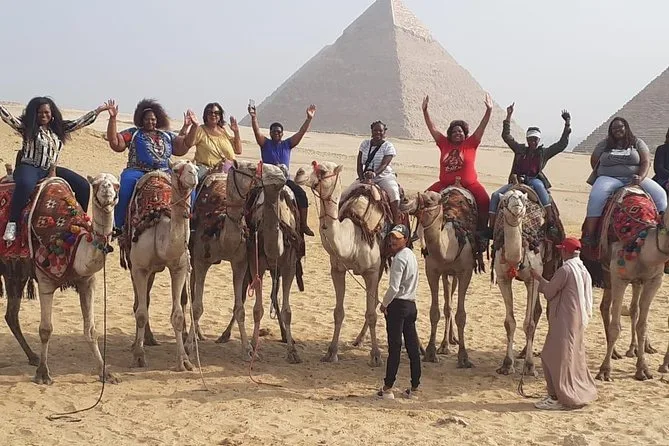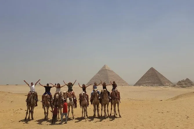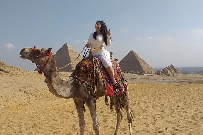 Du stehst unter den Pyramiden von Gizeh, reitest auf einem Kamel über goldenen Sand, genießt ein Mittagessen mit Blick auf die antiken Steine und schlenderst durch die Hallen voller Schätze der Pharaonen im Grand Egyptian Museum – alles mit einem lokalen Guide, der sich um jedes Detail kümmert, damit du einfach nur genießen kannst.