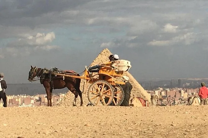 Ein traditionelles Mittagessen in einem Restaurant mit Blick auf die Pyramiden ist inklusive; vegetarische Optionen sind auf Wunsch verfügbar.