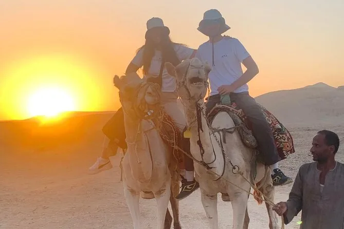 Auf dieser Kamelritt-Tour an Luxors Westbank schlenderst du mit einem lokalen Guide durch Dörfer und Felder, triffst freundliche Gesichter, machst Pausen für Ziegen oder Tee und genießt vielleicht den Sonnenuntergang über der Wüste – Momente, die lange nachklingen.