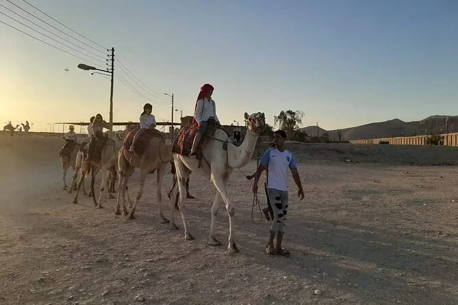 Deine Tour beinhaltet eine Flasche Wasser während des gesamten Kamelritts an Luxors Westbank. Ein erfahrener lokaler Guide begleitet dich in deinem Tempo durch Dörfer und Felder, mit der Möglichkeit, vor der Rückkehr zu den Stables eine Teepause in der Wüste einzulegen.
