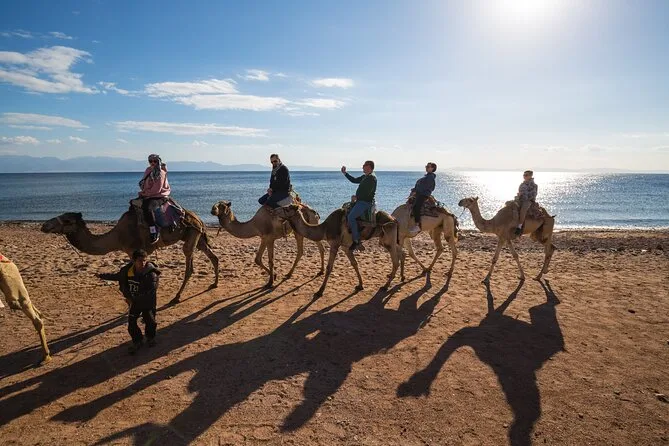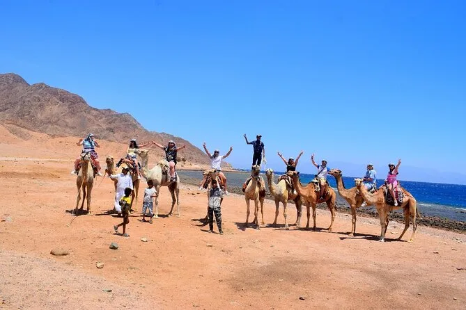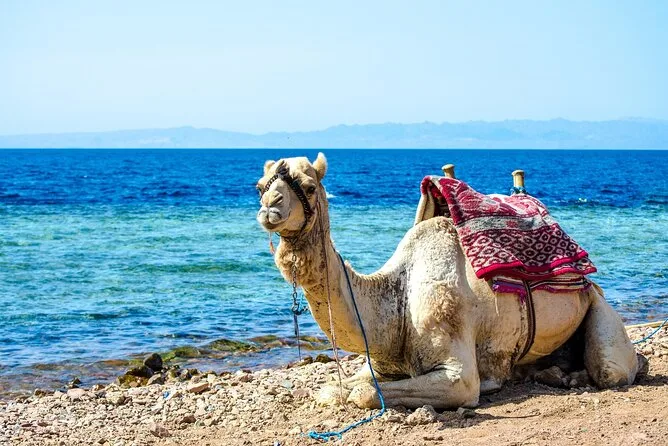 Du reitest Kamele entlang der Dahab-Küste, erkundest mit einem lokalen Guide den bunten Colored Canyon per Jeep, schnorchelst im legendären Blue Hole zwischen Korallenriffen und genießt ein einfaches Mittagessen am Meer. Freu dich auf Momente voller Lachen und stillem Staunen, die lange nachklingen.