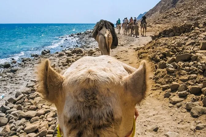 „Bist du dir sicher, dass du das Kamel ausprobieren willst?“ grinste unser Guide Ahmed, als ich am Ufer in Dahab zögerte. Das Kamel war größer, als es aus der Entfernung wirkte, und ehrlich gesagt wollte ich fast abspringen – doch dann wehte die Meeresbrise und ich dachte mir, warum nicht? Wir waren früh morgens aus Sharm El Sheikh aufgebrochen, die Sonne lugte gerade über die trockenen Hügel. Als wir in Dahab ankamen, waren meine Schuhe schon voller Sand und mein Haar fühlte sich salzig an. Ahmed erzählte von seiner Kindheit hier – wie er schon schwimmen ging, bevor überhaupt Touristen kamen. Er kannte jeden, und die Leute grüßten uns, als wir durch die Stadt fuhren.