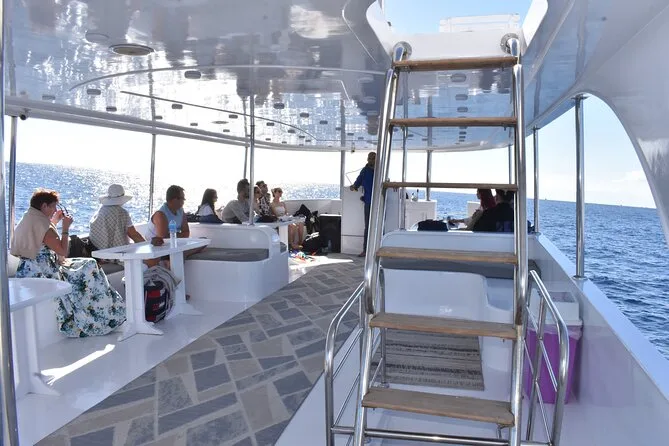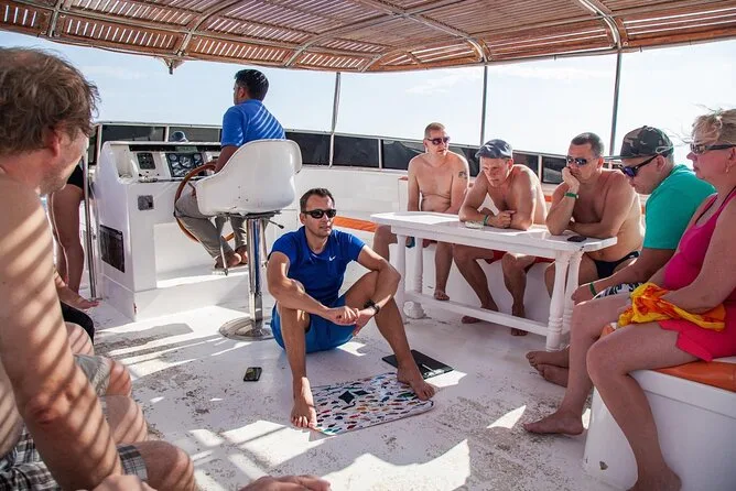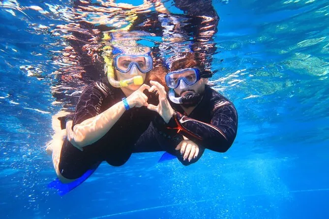 Dein Tag umfasst den Hin- und Rücktransfer vom Hotel in Sharm el Sheikh im klimatisierten Fahrzeug, den Eintritt zu Ras Mohamed und White Island mit der Luxus-Yacht, zwei geführte Schnorchelstopps mit kompletter Ausrüstung (Maske, Flossen, Schwimmwesten), unbegrenzt Softdrinks wie Wasser und Tee sowie ein frisches Buffet mit Hühnchengerichten und Salaten, bevor du gegen 17 Uhr zum Hafen zurückkehrst.