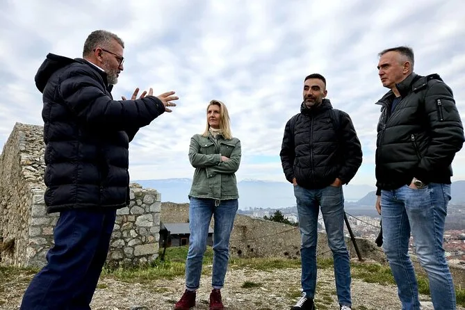 Mit einem lokalen Guide überquerst du die Grenze von Tirana nach Nordmazedonien, genießt Kaffee an der Quelle des Drini in Struga, erkundest das UNESCO-Weltkulturerbe Ohrid mit seinen Kirchen am See und schlenderst durch verwinkelte Gassen, bevor du die Bergkulisse über dem Ohridsee bewunderst – ein Tag voller kleiner Überraschungen und stiller Schönheit.