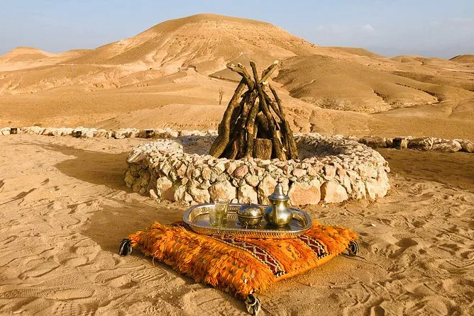 Ihr Transport ist klimatisiert (was nach Verlassen von Marrakesch wirklich angenehm ist), den ganzen Tag über gibt es Wasserflaschen, und Ihr Guide kennt jede Abkürzung und Geschichte unterwegs. Das Mittagessen ist inklusive – Tajine, Couscous Royale, Salat, Obst – und es gibt auch einen Kamelritt in der Agafay-Wüste.