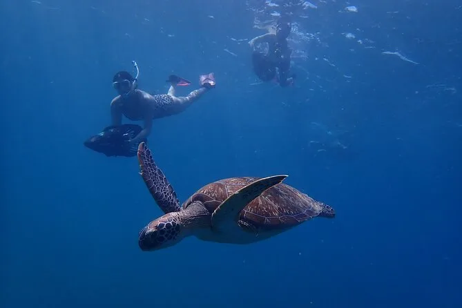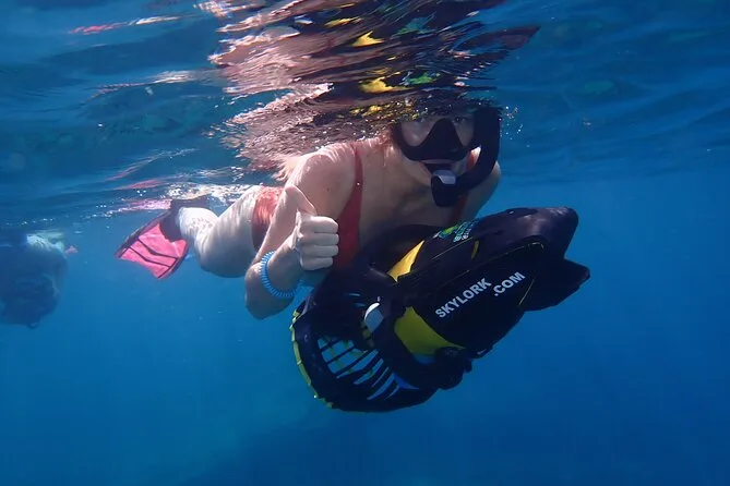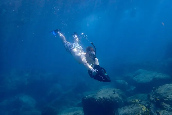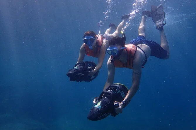 Du bekommst einen Sea Scooter, Schwimmweste (Pflicht), Maske, Schnorchel, Flossen, Trinkwasser und Unterwasserfotos.