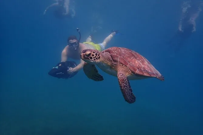 Dein Tag beinhaltet den gemeinsamen Transfer von deiner Unterkunft in Antigua, die Nutzung eines Sea Scooters plus komplette Schnorchelausrüstung (Maske, Schnorchel, Flossen), eine verpflichtende Schwimmweste für deine Sicherheit, frisches Trinkwasser nach dem Schwimmen, Unterwasserfotos vom Guide, damit du keine Kamera mitbringen musst – und natürlich die Zeit, mit einem Experten die Unterwasserwelt zu entdecken, bevor du glücklich und sandig zurückkehrst.