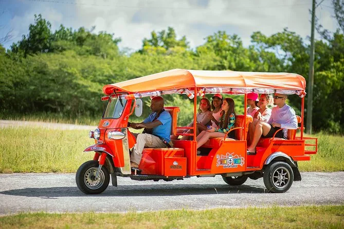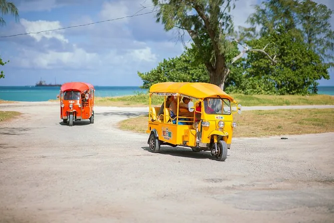 Dein Tag beinhaltet Fahrten im offenen Tuk-Tuk durch den Fig Tree Drive Regenwald mit einem lokalen Guide, Stopps zum Probieren frischer Früchte von Straßenverkäufern, Besuche an drei traumhaften weißen Sandstränden zum Schwimmen oder Relaxen sowie Wasserflaschen, kleine Snacks und den typischen Inselpunsch jederzeit zum Genießen.