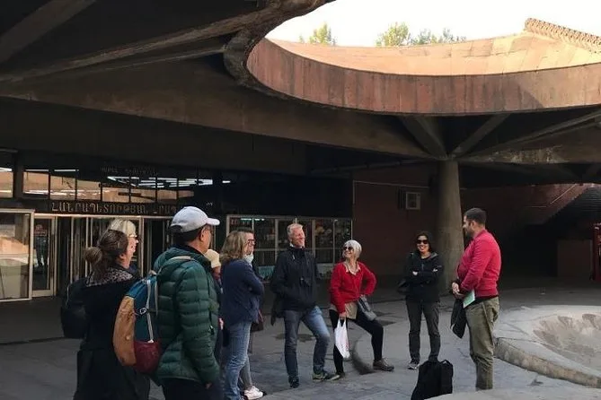Dein Tag umfasst einen englischsprachigen Guide, der dich zu zentralen Sehenswürdigkeiten wie dem Platz der Republik und der Cascade führt; unterwegs gibt es Kaffee oder Tee; außerdem hältst du in einem armenischen Restaurant, um lokale Vorspeisen wie Zaatar mit Käse, Muhammara und Blätterteig zu probieren, bevor es weiter durch die geschichtsträchtigen Straßen geht.