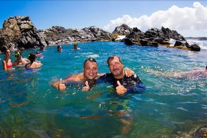 Dein Tag beinhaltet privaten Transfer mit Abholung, alle Eintrittsgebühren für den Arikok Nationalpark, Wasserflaschen für die Sonne, Schnorchelausrüstung für Natural Pool und Baby Beach sowie frische pastechi, bevor du entspannt (und wahrscheinlich sandig) zurückkehrst.