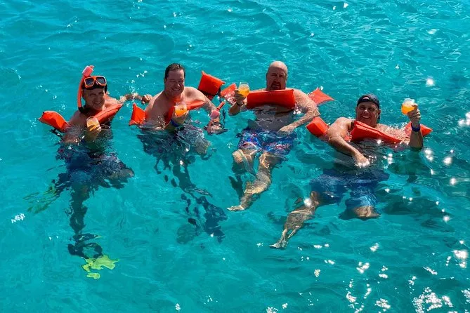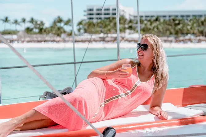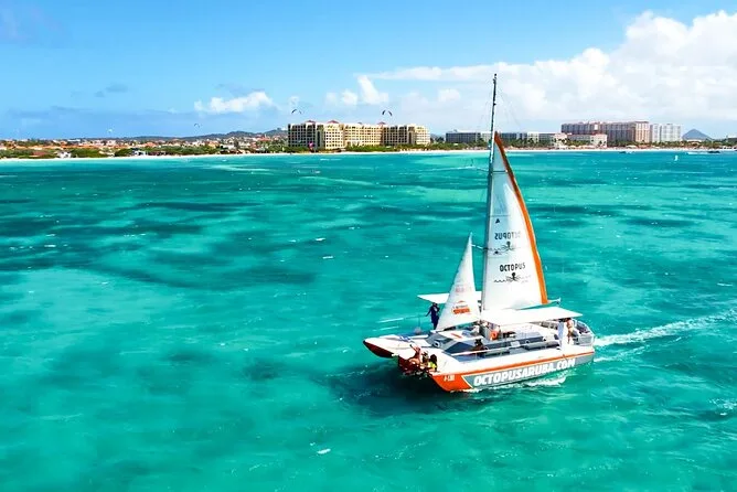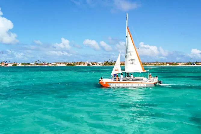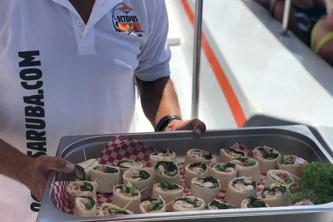 Dein Nachmittag startet mit dem Check-in an einer Strandhütte, gefolgt von einer ruhigen 30-Meter-Shuttle-Bootsfahrt zum Premium-Katamaran. Die komplette Schnorchelausrüstung (mit geduldiger Anleitung), Schwimmwesten, unbegrenzte Drinks von der offenen Bar direkt am Platz, frische Lunch-Häppchen während der Fahrt, Betreuung durch zertifizierte lokale Crew (inklusive Ersthelfer), Toiletten an Bord – und zum Schluss bekommst du noch ein Octopus Aruba-Souvenir, bevor es zurück an Land geht.