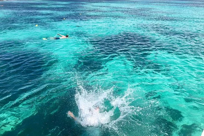 Die Tour ist ein Nachmittagsausflug mit mehreren Schnorchelstopps und Mittagessen an Bord; die genaue Dauer ist nicht angegeben, aber mehrere Stunden auf See sind zu erwarten.