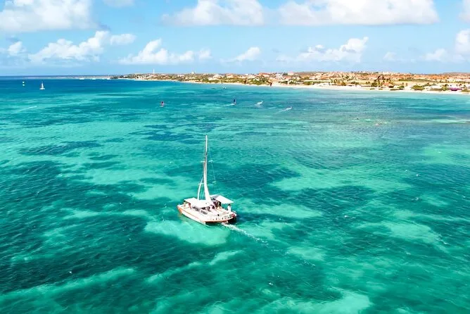 Segle entlang Arubas klarer Küste auf einem bequemen Katamaran mit offener Bar direkt am Platz, geführtem Schnorcheln am Antilla-Schiffswrack und in Catalina Bay (Ausrüstung inklusive) sowie frischen Lunch-Häppchen, die dir serviert werden. Freu dich auf lockere Stimmung mit lokalen Guides, warmes Wasser voller bunter Fische und viel Platz zum Entspannen – echtes Insel-Feeling ohne Gedränge.