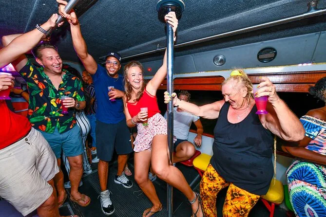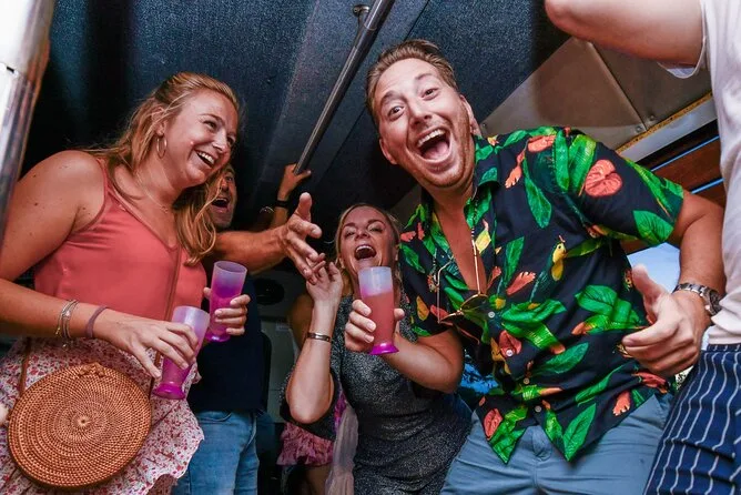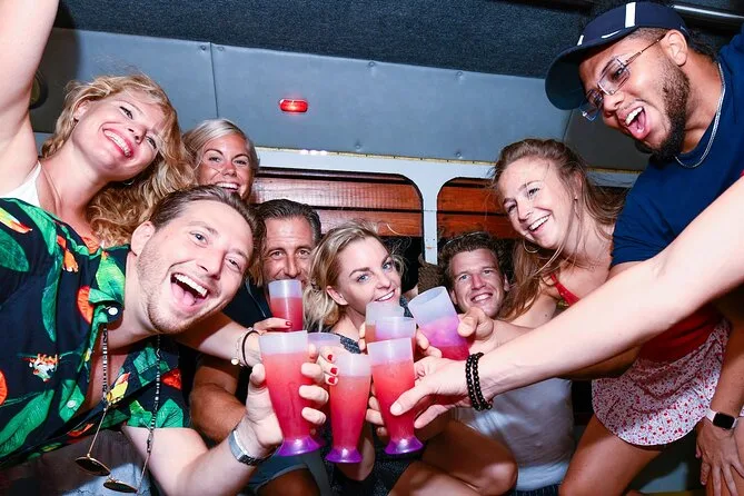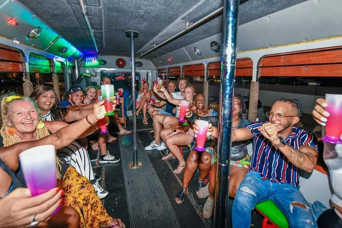 Spring mit dem Partybus von Arubas besten Bars und Clubs zur nächsten Location – mit unbegrenzten Aruba Ariba Cocktails und einem lokalen DJ, der die ganze Nacht auflegt. Freu dich auf Spaß mit deinem energiegeladenen Gastgeber, kostenlose Shots an jeder Station und spontanes Tanzen auf und neben dem Bus. Dank Hoteltransfer kannst du sorgenfrei feiern und das echte Insel-Nachtleben genießen.