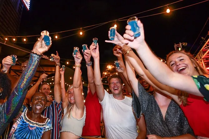 Dein Abend startet mit lebhaftem Hoteltransfer fast überall auf Aruba, unbegrenzten Aruba Ariba Cocktails, die dein persönlicher Barkeeper zwischen den Locations ausschenkt, kostenlosen Willkommensshots an jeder Bar oder jedem Club entlang der Palm Beach- oder Downtown-Routen, nonstop Beats von einem Live-DJ – alles begleitet von einem energiegeladenen Einheimischen, der bis zur sicheren Rückkehr für Stimmung sorgt.
