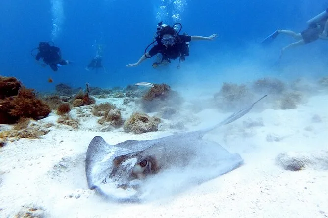 Dein Tag umfasst die Abholung vom Hotel für bis zu vier Personen, alle nötigen Tauchausrüstungen vom Guide gestellt und viel Zeit, um in deinem Tempo zu lernen, bevor ihr gemeinsam Arubas Riff und Wrack als private Gruppe erkundet.