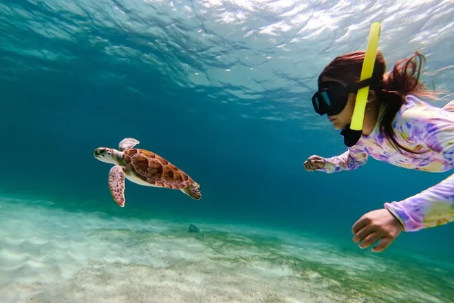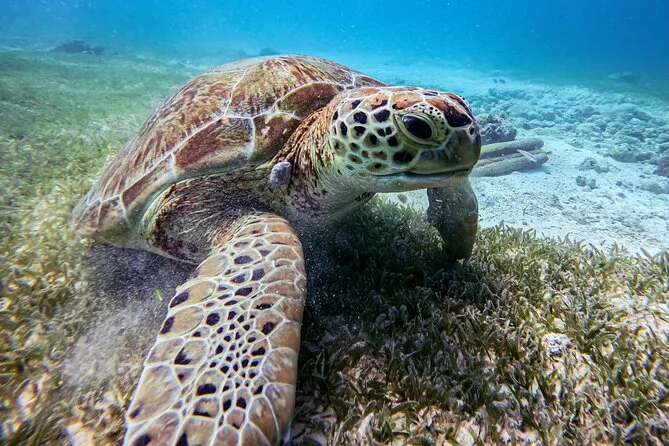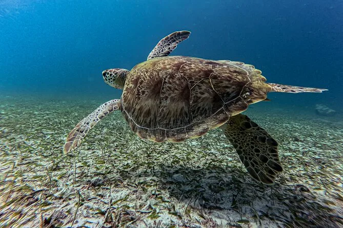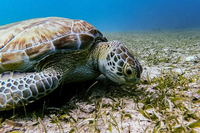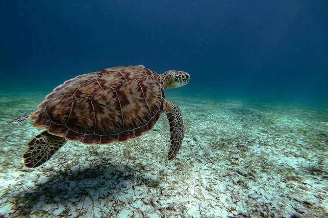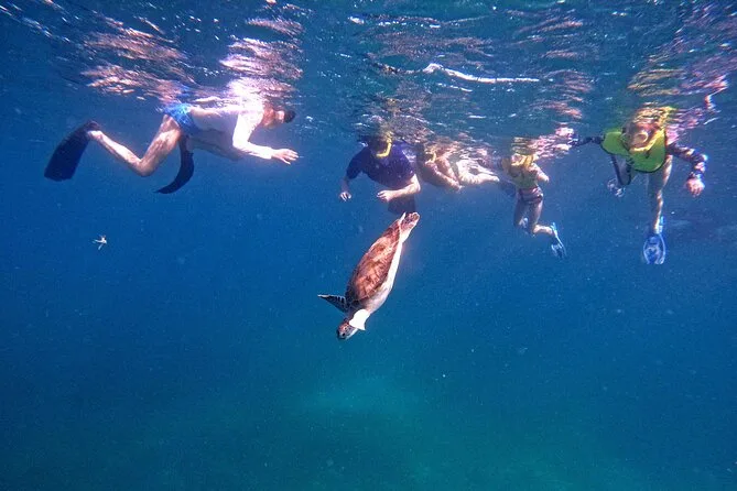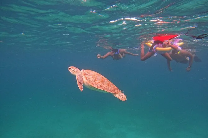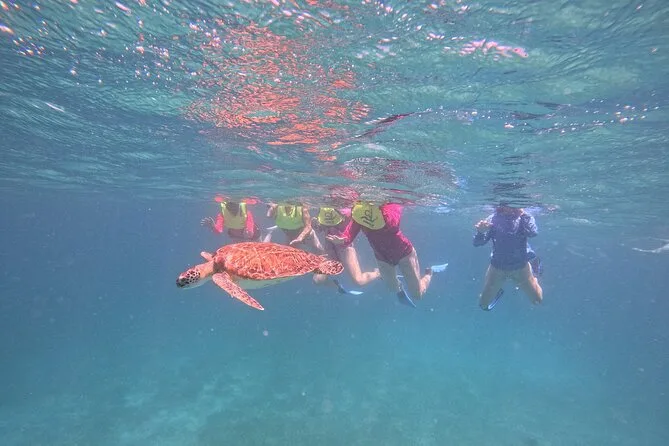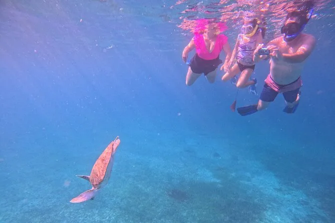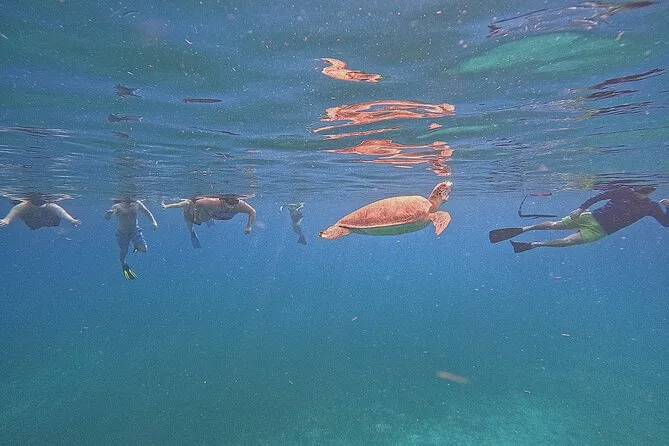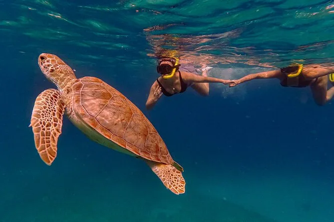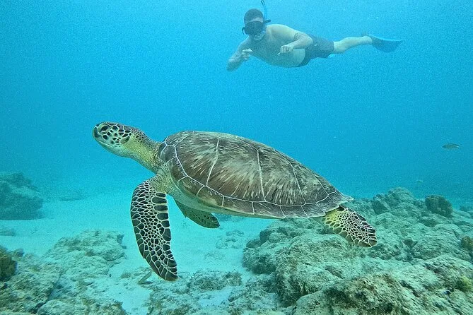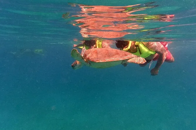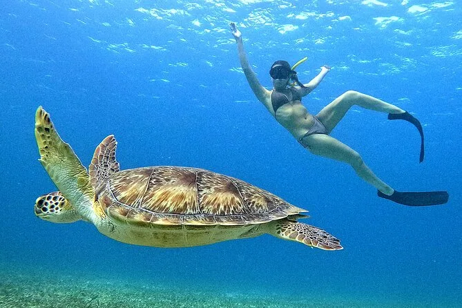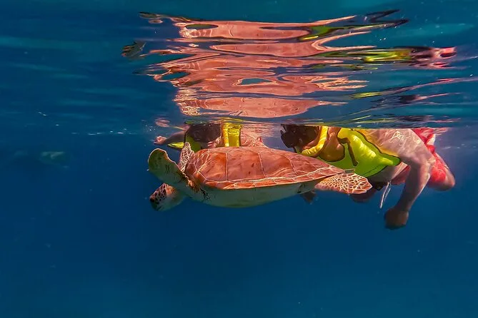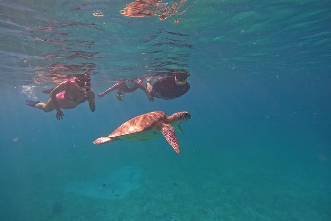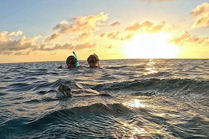 Du gleitest mit einer kleinen Gruppe und lokalem Guide in Arubas klares Wasser am Tres Trapi – Schwimmkenntnisse sind nicht nötig. Beobachte Meeresschildkröten, entdecke bunte Fische am Riff und genieße entspannte Momente zusammen. Inklusive Ausrüstung und erfrischendem Getränk nach dem Schnorcheln – ein Erlebnis, das lange im Herzen bleibt.