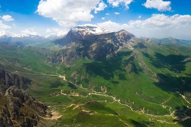 Du fährst von Baku in den wilden Norden Aserbaidschans: Erlebe Legenden am Beshbarmaq, bestaune die surrealen Candy Mountains von Khizi, genieße heiße Qutabs im Gachrash-Wald und entspanne am ruhigen Chenlibel-See – alles mit Abholung und einem lokalen Guide, der jede Kurve kennt. Hier gibt’s nicht nur Landschaft, sondern auch Geschichten und Geschmack.