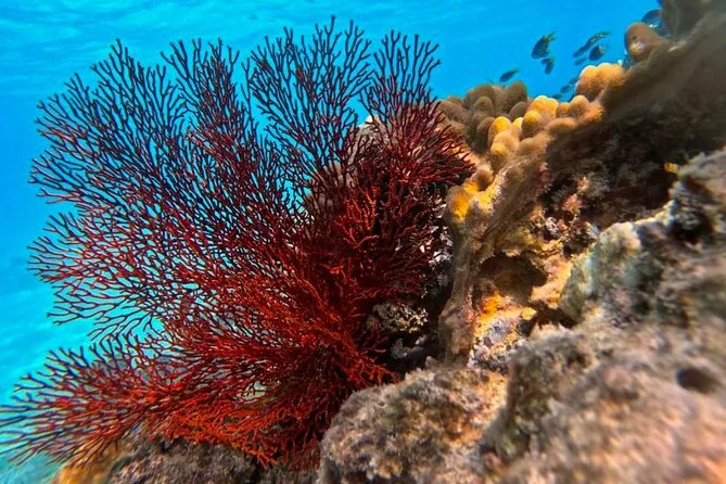 Als wir schließlich anhielten (die Fahrt ist flott, aber nicht gehetzt), verteilte Jamie Schnorchelausrüstung und Stingersuits – hier gibt’s tatsächlich eine „Quallensaison“. Ich kämpfte kurz mit meiner Maske, jemand anderes ließ seine fallen und lachte darüber. Das Wasser war kühler als gedacht, aber nach einer Weile vergisst man alles außer dem, was unter einem liegt. Über dem Korallenriff zu schweben fühlt sich seltsam still an, obwohl man das eigene Atmen in den Ohren hört. Fische flitzten umher, als gehörte das hier ihnen – was ja auch stimmt. An einer Stelle winkte Jamie uns zu einer riesigen Muschel – er versuchte, mir den lateinischen Namen zu sagen, aber ehrlich, das klang fast erfunden.