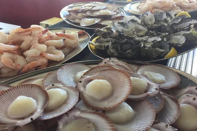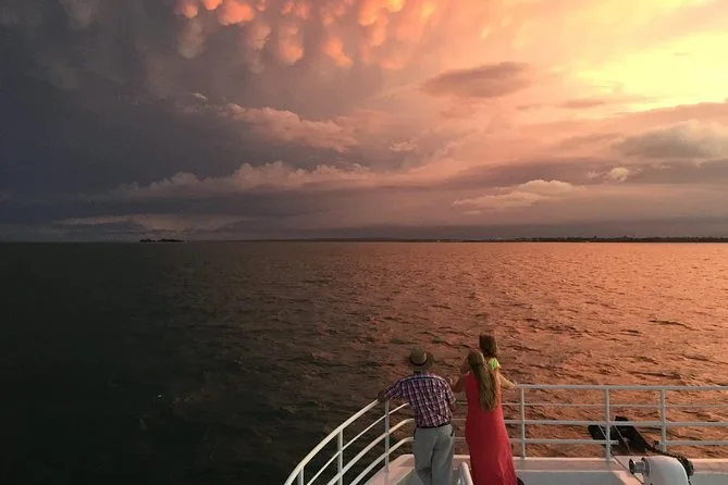 Dein Abend beinhaltet den Hoteltransfer, ein Begrüßungsgetränk beim Einstieg und großzügige Platten mit frischen Meeresfrüchten aus Hervey Bay sowie Alternativen ohne Fisch, bevor es gemeinsam zurück ans Ufer geht.