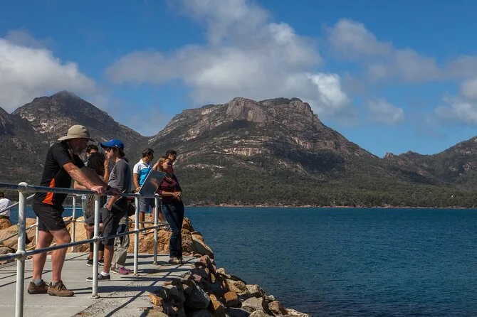 Starte deinen Tag in Hobart und entdecke Tasmaniens Ostküste – wandere durch Wälder zum Wineglass Bay Aussichtspunkt oder hinunter zum weißen Sandstrand, wenn du magst. Teile Geschichten mit deinem Guide beim Mittagessen an ruhigen Buchten und genieße frische Austern oder lokalen Wein bei Devil’s Corner, bevor es zurückgeht – erfüllt von Meeresluft und vielleicht ein bisschen sonnenverbranntem Staunen.