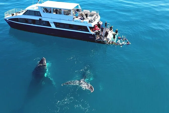 Wenn die Bedingungen passen, hast du die Möglichkeit, mit Buckelwalen zu schwimmen.