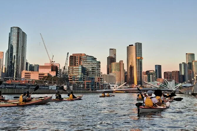 Dein Abend beinhaltet die Nutzung stabiler Sea Bear Kajaks mit kompletter Ausrüstung, wasserdichte Taschen für deine Sachen, ein warmes Dinner, das dir während der Tour direkt aufs Boot gebracht wird (z. B. Fish & Chips oder vegetarische Pasta), sowie freundliche lokale Guides, die dich sicher von Docklands durch Melbournes Zentrum bis nahe Federation Square begleiten.