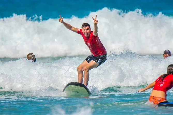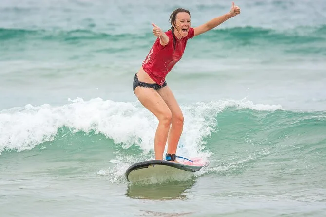 Dein Tag beinhaltet einen Gruppensurfkurs am Noosa Main Beach mit kompletter Ausrüstung – Surfboard, Rashvest und bei Bedarf Neoprenanzug – sowie Betreuung durch erfahrene lokale Coaches während der gesamten Session.